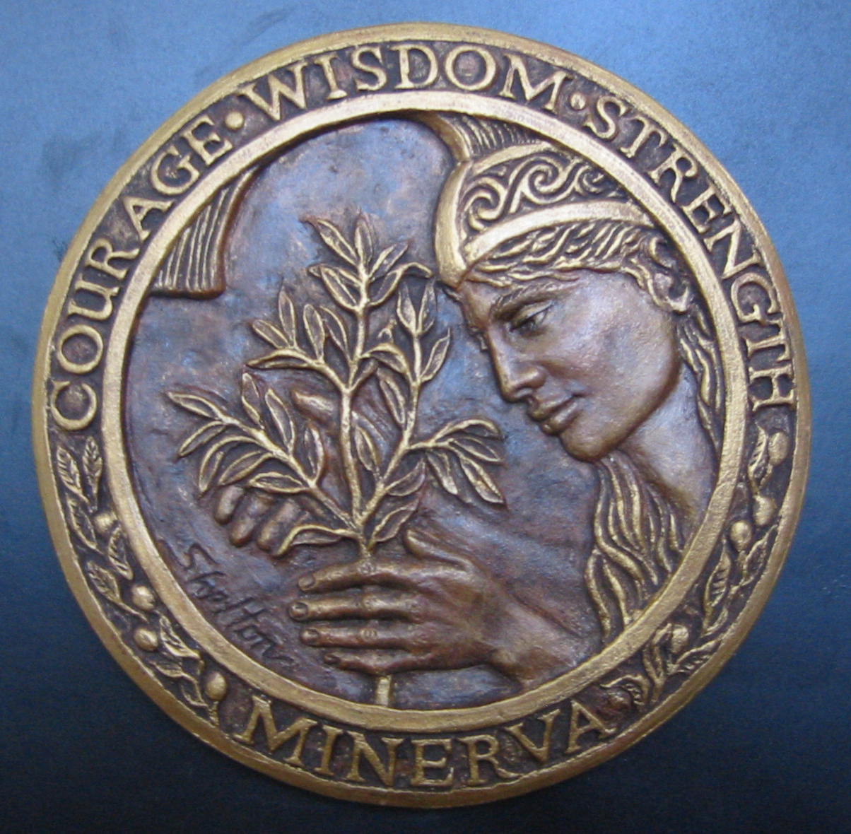 Maria Shriver, California’s Former First Lady, commissioned Susan Shelton to create this seal as part of her Minerva Awards project. Named for the Roman Goddess of Wisdom, the Minerva Awards honor women who have dedicated their lives to furthering positive change in California.