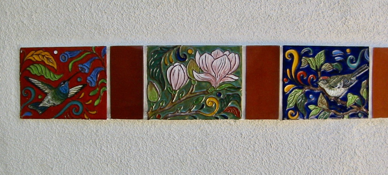 Tile Detail - Hummingbird, Magnolias, and Kinglet