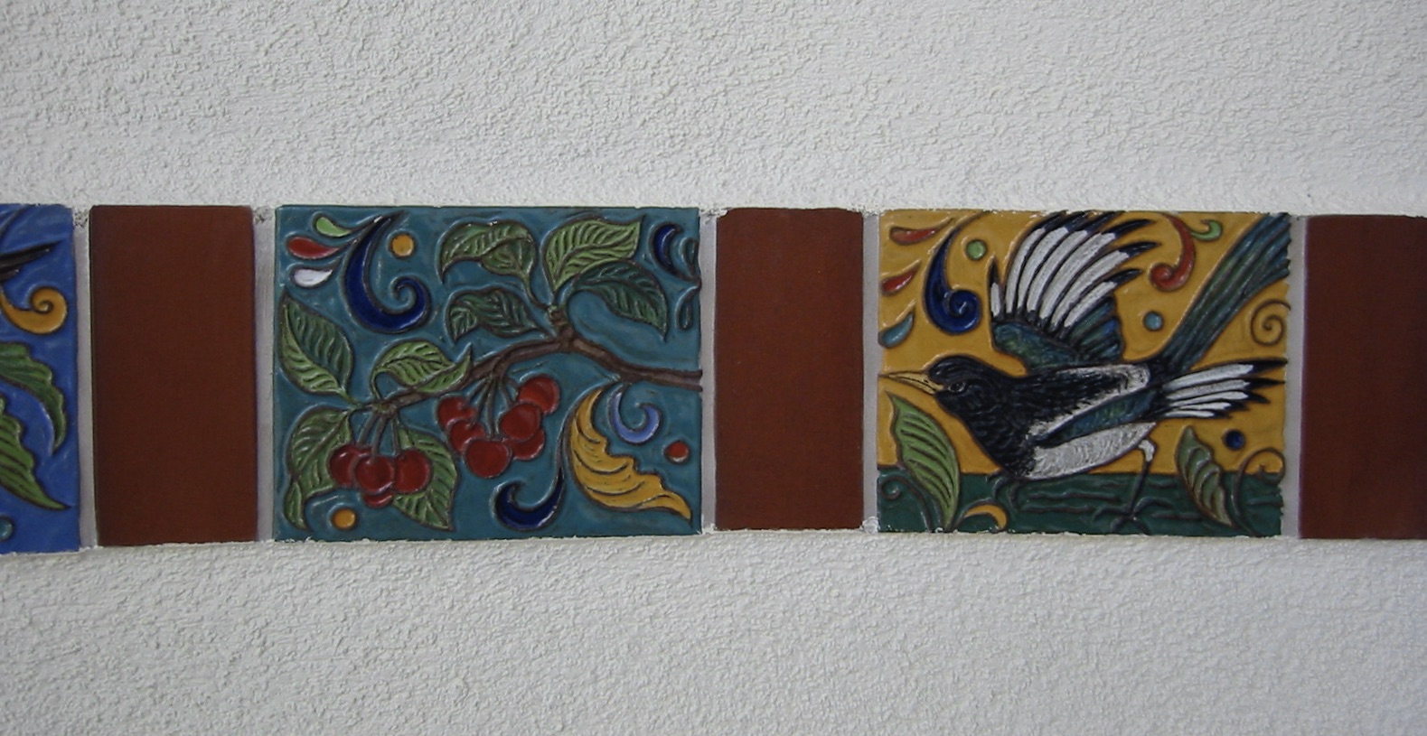 Tile Detail - Cherries and Magpie